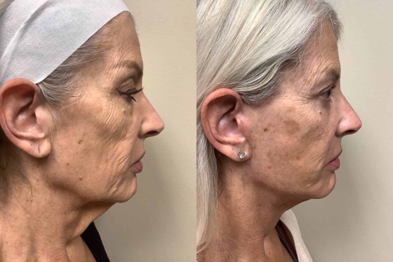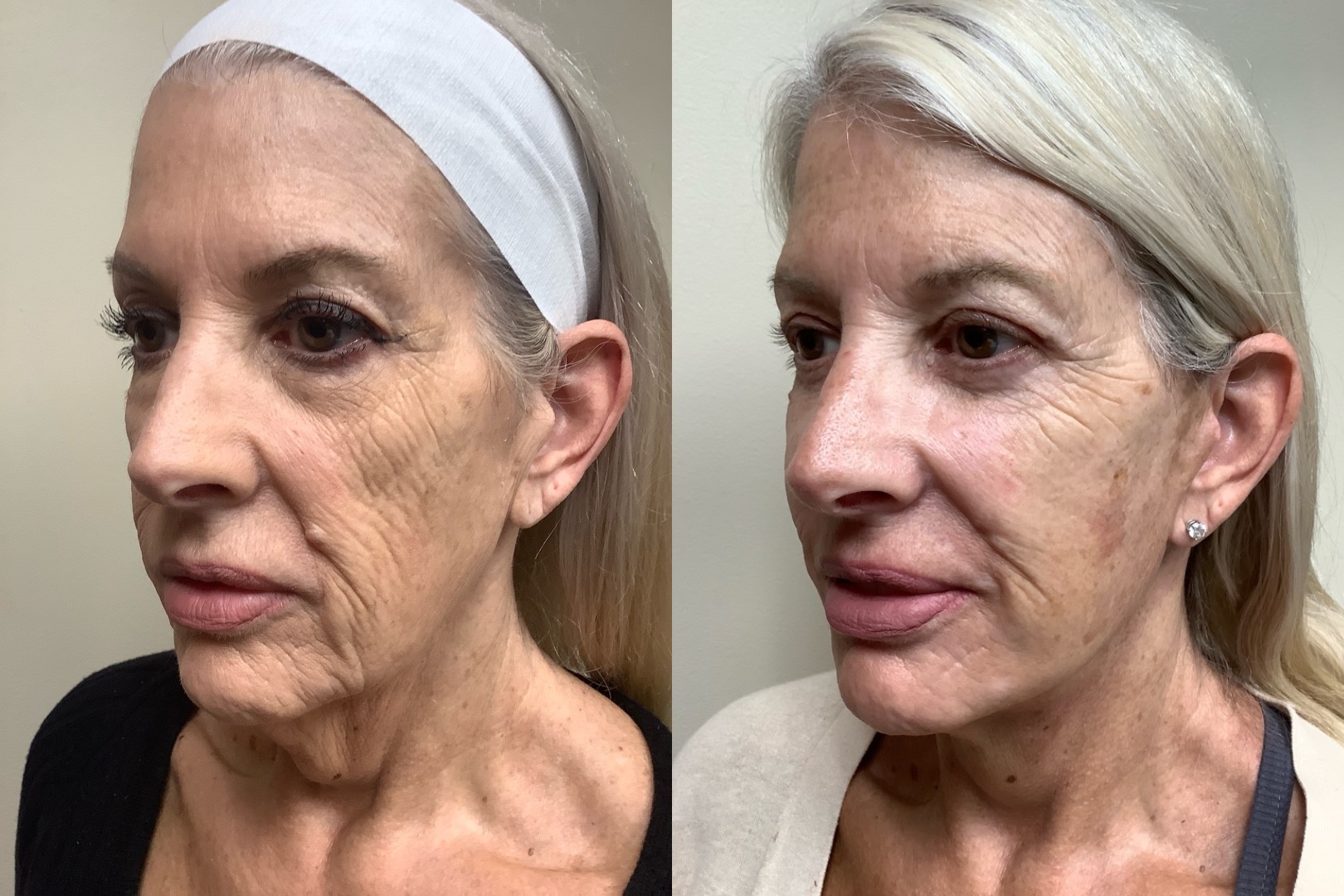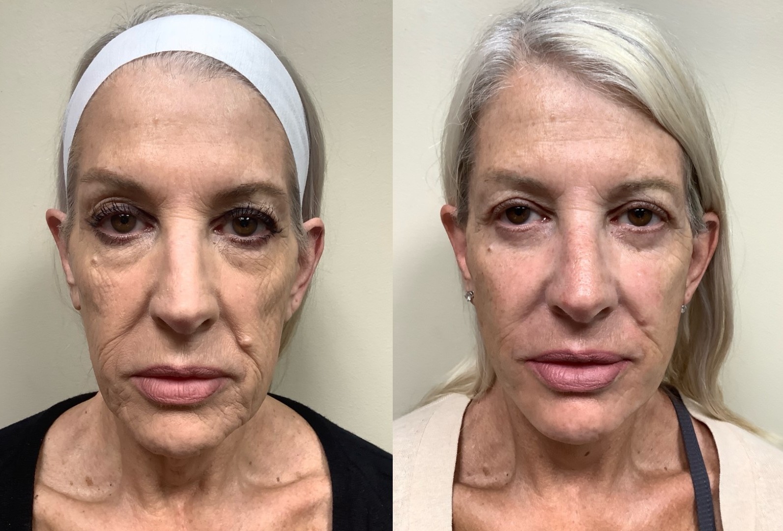 This is a 65 year old female who is 4 months from face and neck lift, upper and lower lid blepharoplasty, and perioral CO2 laser resurfacing.